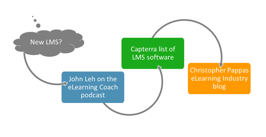 My first major resource on the LMS journey was an informative and lively podcast from Connie Malamed, the eLearning Coach. In her podcast titled The Strategic Use of Learning Management Systems, John Leh of Talented Learning speaks to the strategies he uses to help his clients through the myriad of LMS vendors. John recommends concentrating on the training needs of the LMS with stakeholders, then searching for a vendor that fits the organization’s needs. In the podcast, John speaks to LMS integration with other critical systems as well as how to measure the success of the LMS after implementation. After listening to this podcast, I was ready for more.